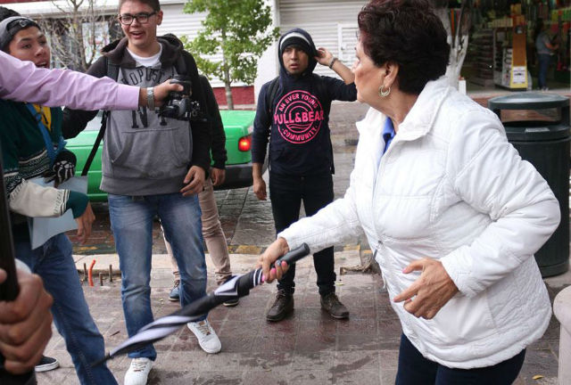 Al escuchar el escándalo, los reporteros que seguían al líder panista llegaron al lugar de los hechos, mientras que Catalina Urquieta no dejaba de ofender a la víctima.