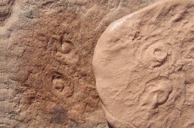 El animal una vez de cuerpo blando se podía ver en la piedra arenisca en el lecho fósil.