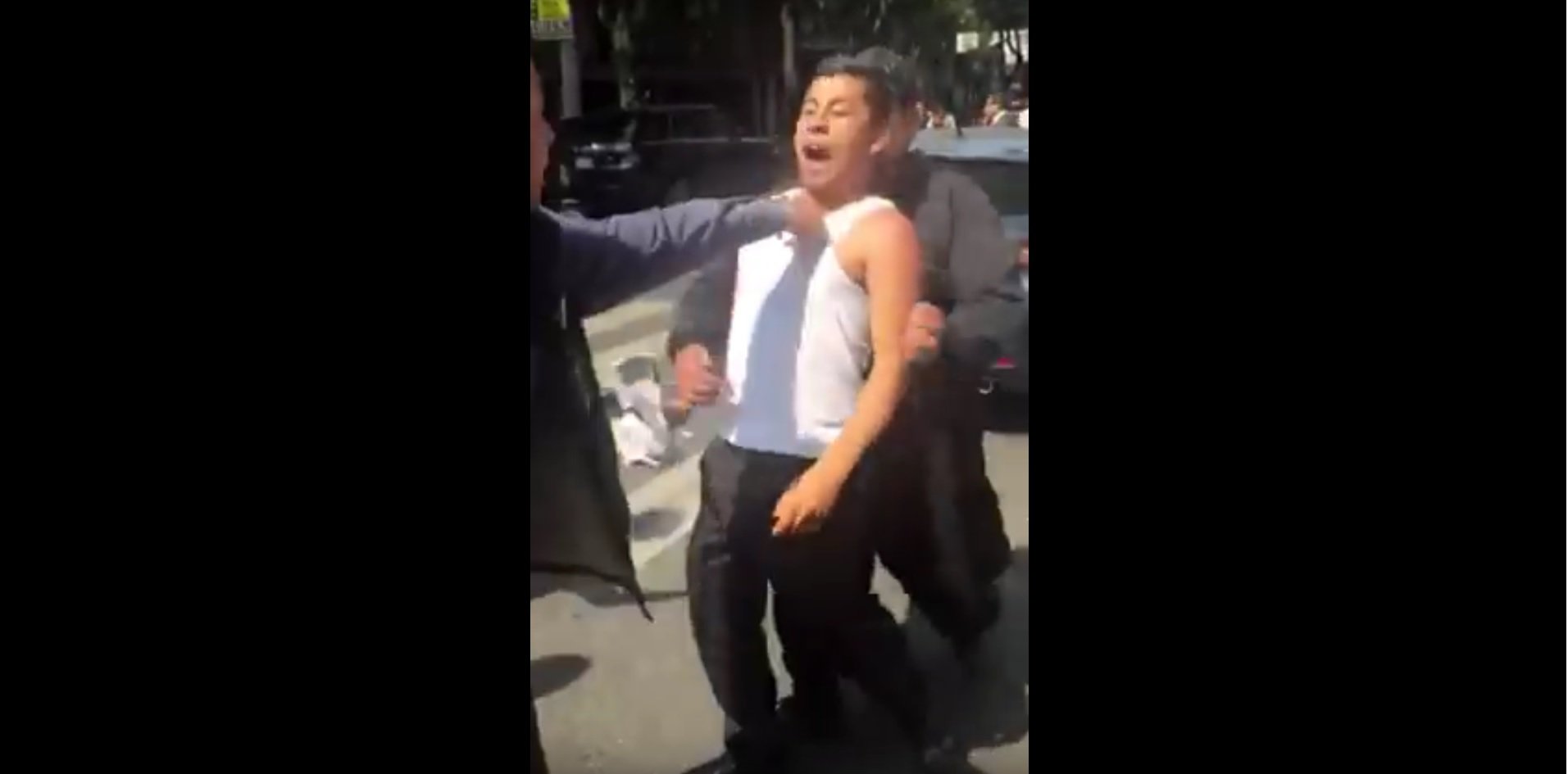 “Suélteme cabrón”, le grita uno de los empleados al escolta que le pregunta “¿dónde dejaste el carro?”, mientras que otro valet es golpeado en la puerta de una camioneta blanca.